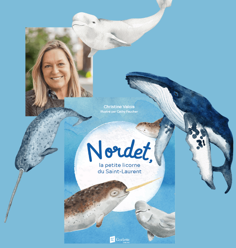 Christine Valois nous fait découvrir la vie marine à travers les yeux d’un jeune narval. Fait à noter, ce narval existe vraiment et nage présentement avec ses amis les bélugas dans le parc marin du Saguenay/Saint-Laurent.