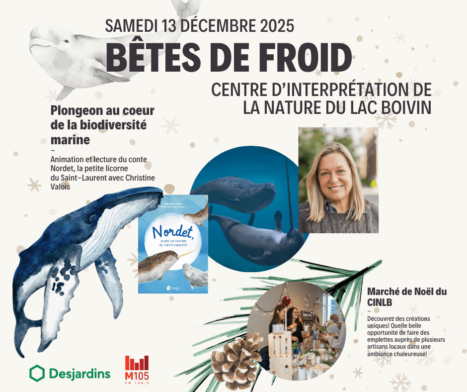 Célébrons l’Action de grâce au CINLB et remercions la nature pour la générosité de la terre et toutes les grâces reçues durant l’année. Plusieurs activités éducatives et créatives seront accessibles pour petits et grands, valorisant notre biodiversité et mettant en lumière comment la faune et la flore s’adaptent au changement de saison.